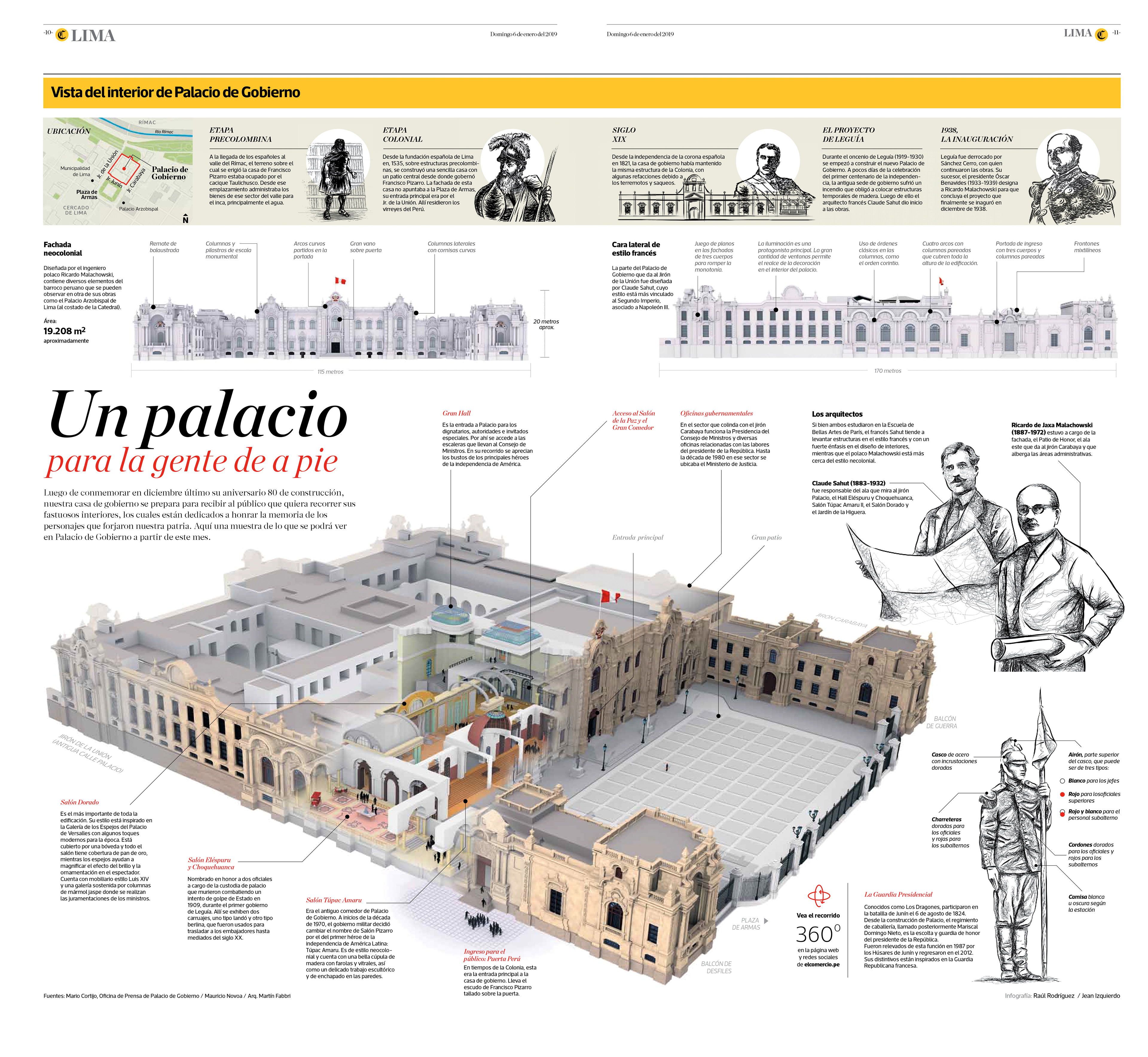 This cut-away graphic explains the spaces that are available for visitors at the Government Palace, the residency and office of the peruvian president. // Co-author: Jean Izquierdo // Published: January 6th 2019.